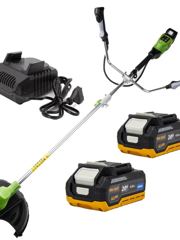 Акумуляторна мотокоса Procraft PTA20/4/2 — універсальний і потужний інструмент для догляду за садом і присадибною ділянкою. Укомплектована двома акумуляторами 20 В 4 А·год та зарядною станцією для тривалої автономної роботи