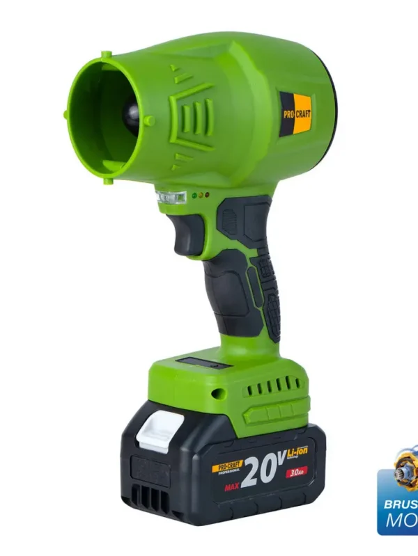 Акумуляторна повітродувка Procraft PB18 призначена для швидкого очищення подвір’я, саду, гаража або майстерні від листя, пилу, тирси та дрібного сміття. Працює від акумулятора 20 В ємністю 3 А·год і забезпечує зручність та автономність.
