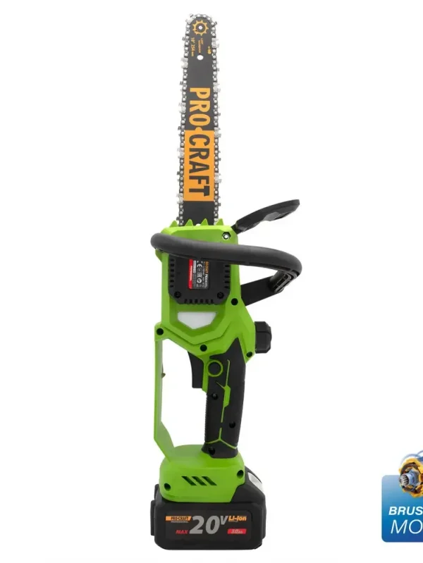 Акумуляторна міні-пила Procraft PKA44 — компактний та потужний інструмент для обрізки гілок, розпилу дощок і господарських робіт у саду, на дачі та будівництві. Оснащена безщітковим двигуном 20 В, напівавтоматичним змащенням ланцюга та двома шинами в комплекті