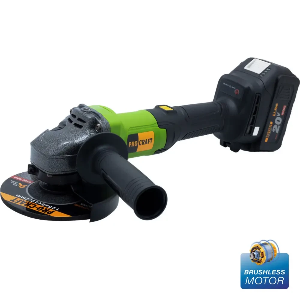 Акумуляторна кутова шліфмашина Procraft PGA20 — потужний та зручний інструмент для будівельних ремонтних і монтажних робіт. Оснащена двошвидкісним двигуном і системою стабілізації обертів що забезпечує стабільну роботу навіть при високих навантаженнях