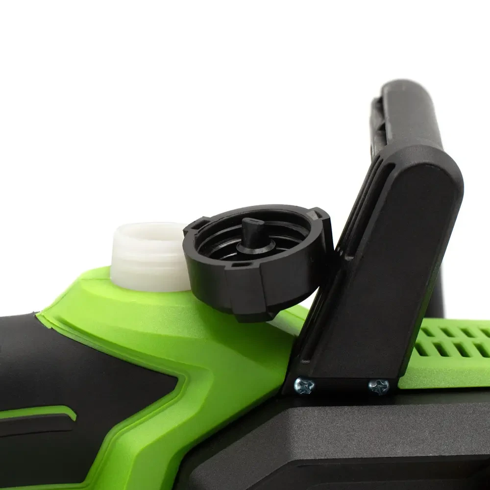 Дві шини та два ланцюги довжиною 10 і 12 дюймів дозволяють адаптувати пилу під різні завдання. Автоматична система змащення зменшує знос, а безключове натягування ланцюга забезпечує швидке налаштування без інструментів.
