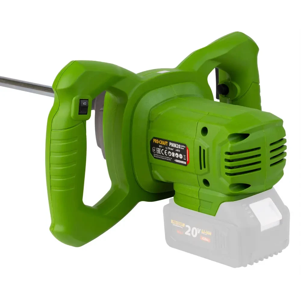 Міксер повністю сумісний з акумуляторною системою Procraft 20 В що дозволяє використовувати один акумулятор з різними інструментами бренду