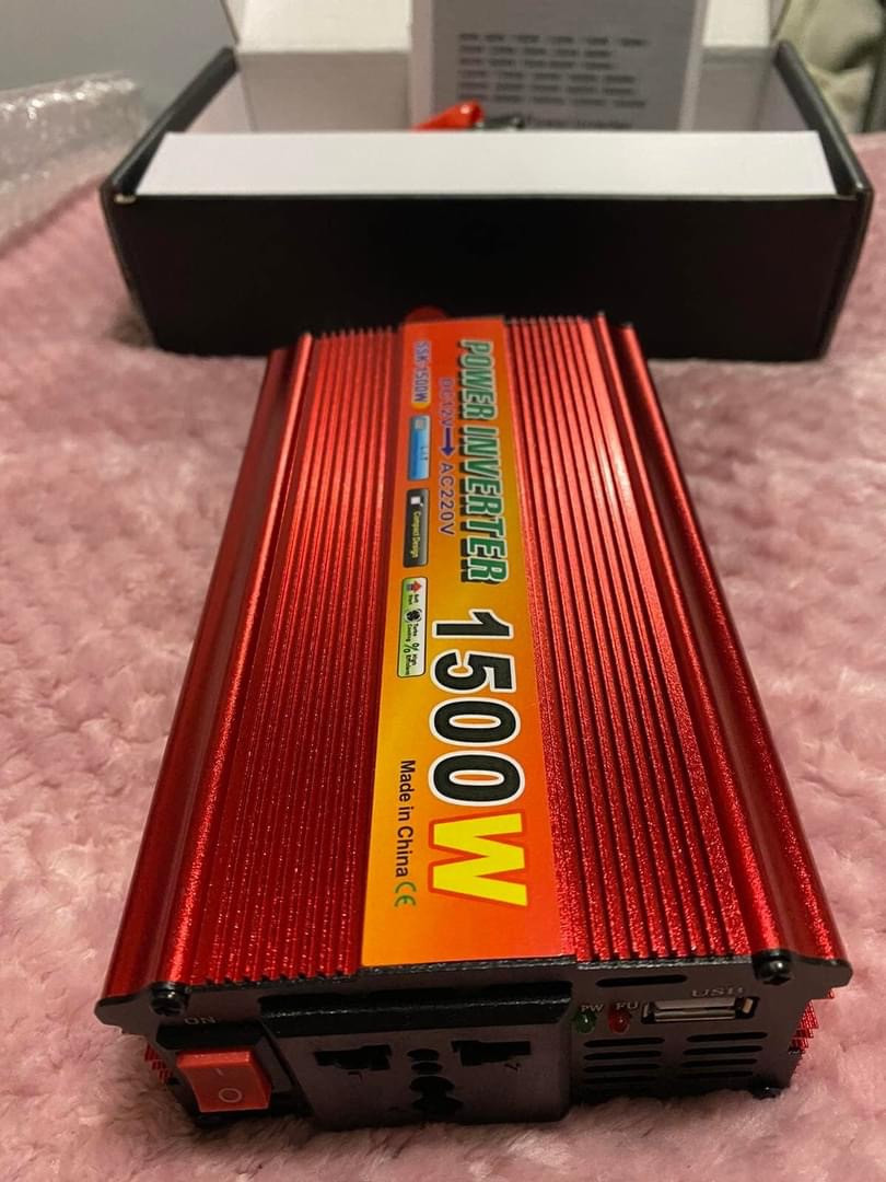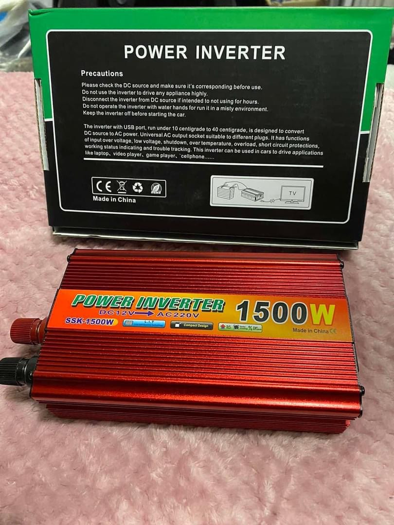 Інвертор 12V–220V 1500W — надійний перетворювач напруги для живлення електроприладів від автомобільного акумулятора або автономної батареї. Підходить для кемпінгу дачі подорожей і резервного живлення