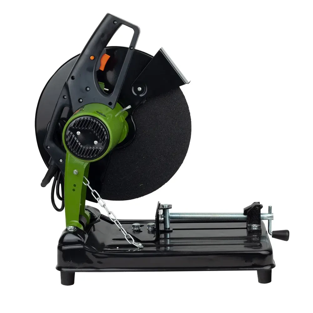 Станок підтримує використання відрізних дисків діаметром 305–355 мм, що робить його універсальним рішенням для різних типів металевих заготовок. Масивна основа дає стійкість під час роботи, а надійний механізм фіксації дає утримання заготовки.