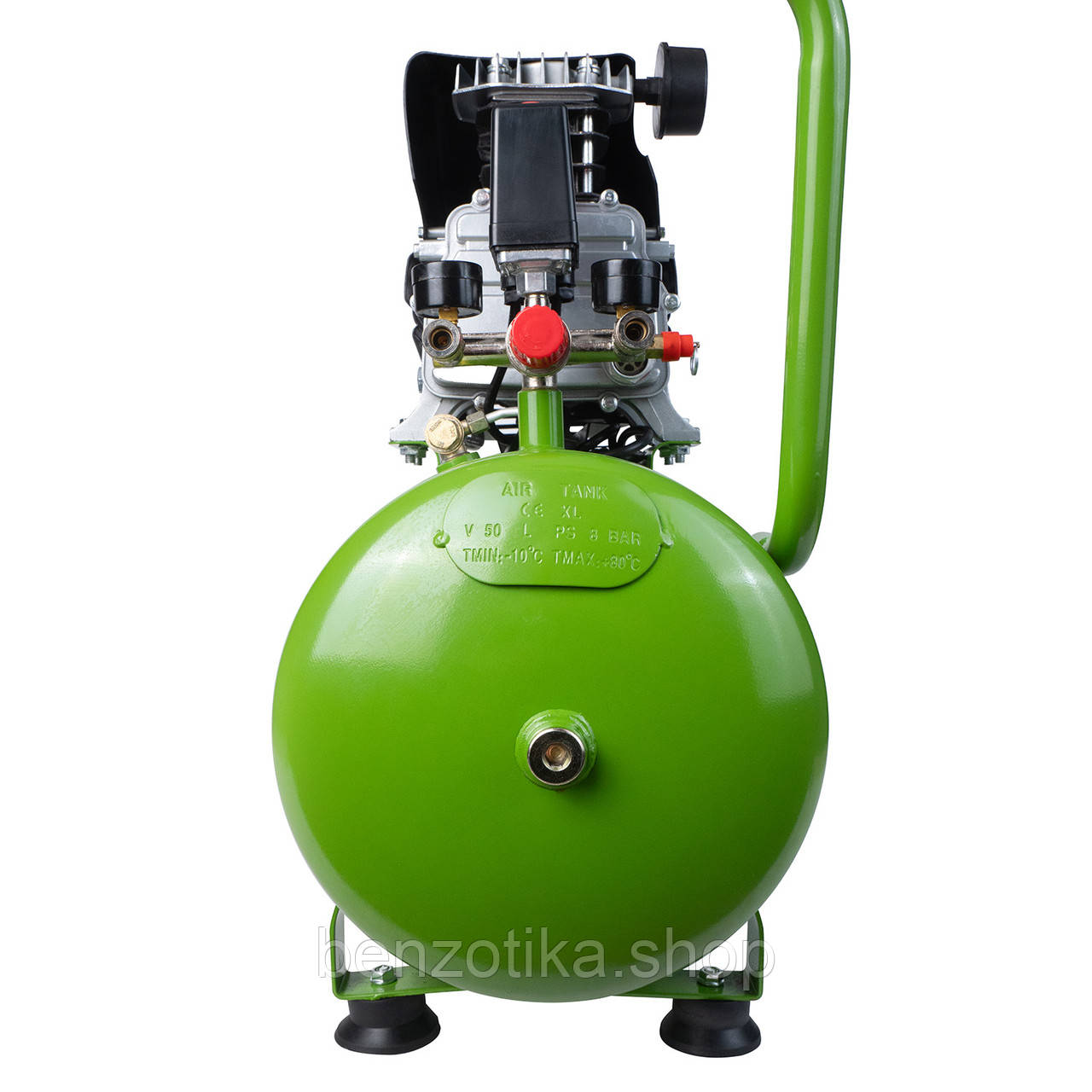 Ресивер об’ємом 50 літрів дозволяє накопичувати значний запас повітря, зменшуючи кількість запусків двигуна та підвищуючи комфорт при тривалій роботі. Максимальний тиск 8 бар робить модель універсальною для побутового та напівпрофесійного використання.