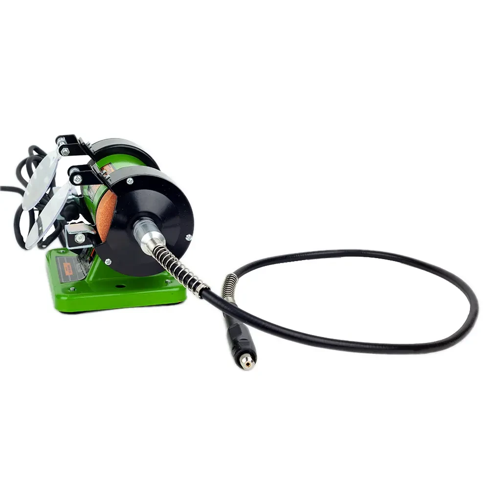 Цанга діаметром 3,2 мм підтримує більшість стандартних насадок для граверів. У комплект входить гнучкий вал, який значно розширює можливості верстата та дозволяє виконувати точні операції, різьблення, гравіювання і обробку важкодоступних зон з високою точністю.