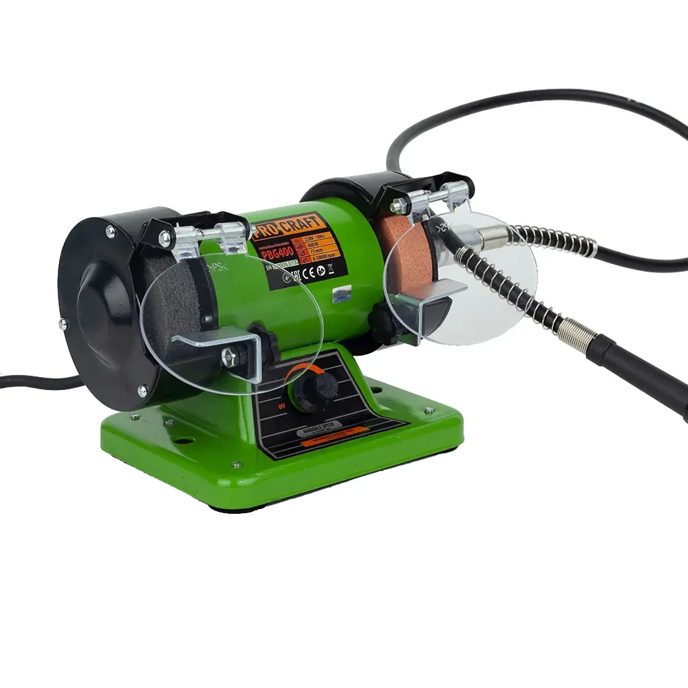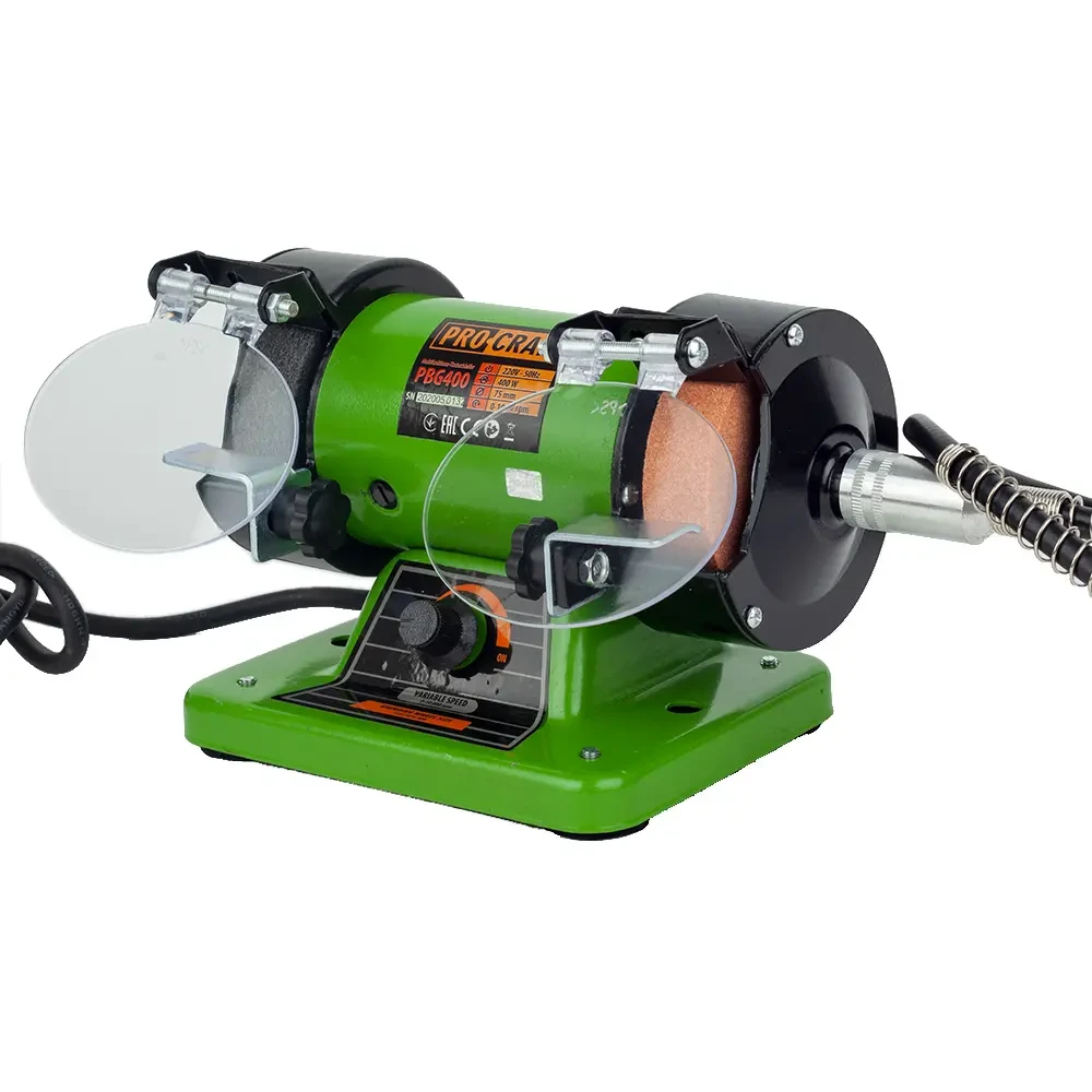 Procraft PBG400 — компактний і універсальний точильно-гравірувальний верстат для заточування, шліфування, гравіювання, полірування та обробки дрібних деталей. Підходить для роботи з деревом, металом, пластиком, склом, каменем та іншими матеріалами