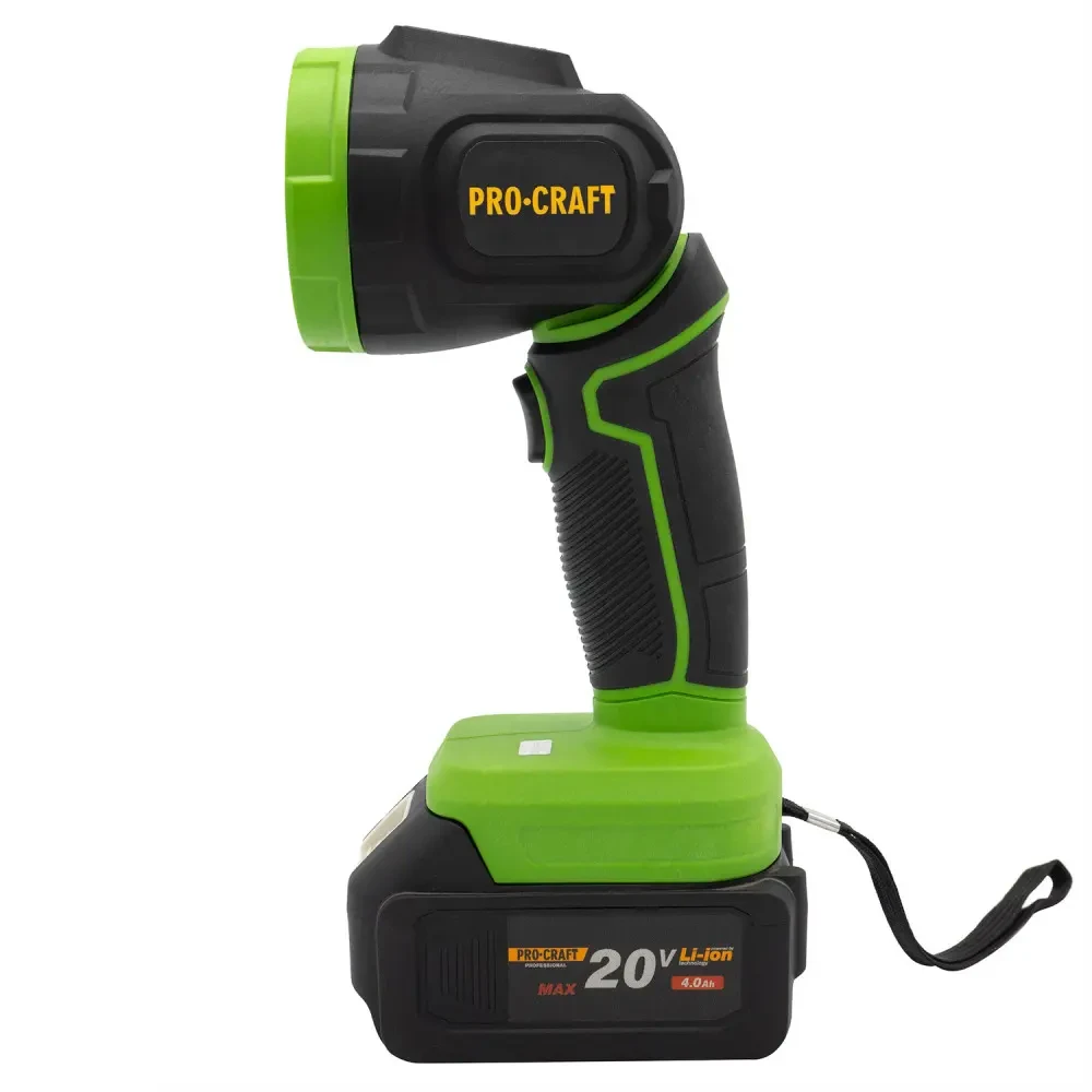 Живлення від акумулятора Procraft 20 В забезпечує мобільність і можливість роботи без електромережі. Світловий потік 300 лм достатній рівень освітлення а потужність 3 Вт забезпечує економне споживання енергії