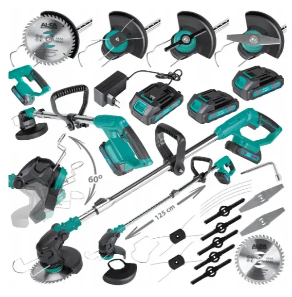 Акумуляторний тример ALFA ALCGT2B-21V — універсальний інструмент для догляду за садом і присадибною ділянкою. Оснащений двома акумуляторами 21 В, комплектом змінних насадок та телескопічною штангою